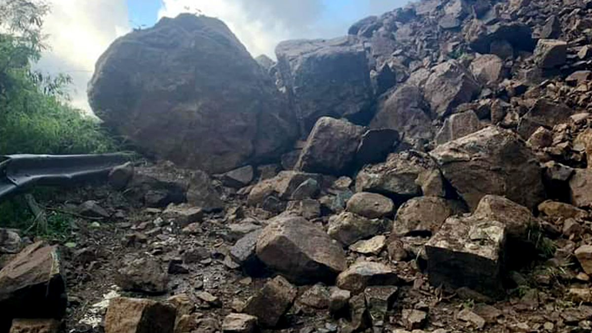 Entre los kilómetros 5.6 al 6.8 de la carretera, en el barrio Barreal, hay un deslizamiento de terreno y rocas que se reactiva durante periodos de lluvia.
