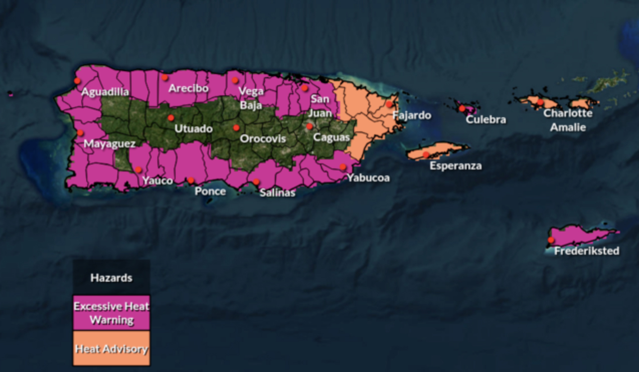Además, el SNM emitió una advertencia de calor para Vieques, Naguabo, Río Grande, Canóvanas, Ceiba, Loíza, Luquillo, Fajardo y Humacao.