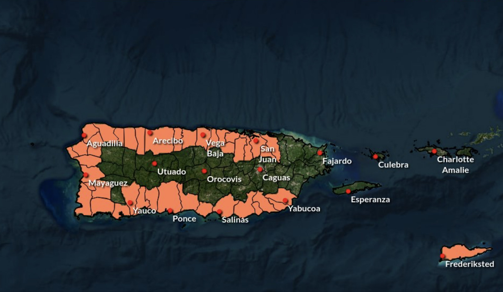 También están incluidos: Guayama, Dorado, Peñuelas, Barceloneta, Arroyo, Aguadilla, Añasco, Aguada, Rincón, Santa Isabel, Toa Baja, San Germán, Cabo Rojo, Lajas, Vega Alta, Trujillo Alto y Carolina.