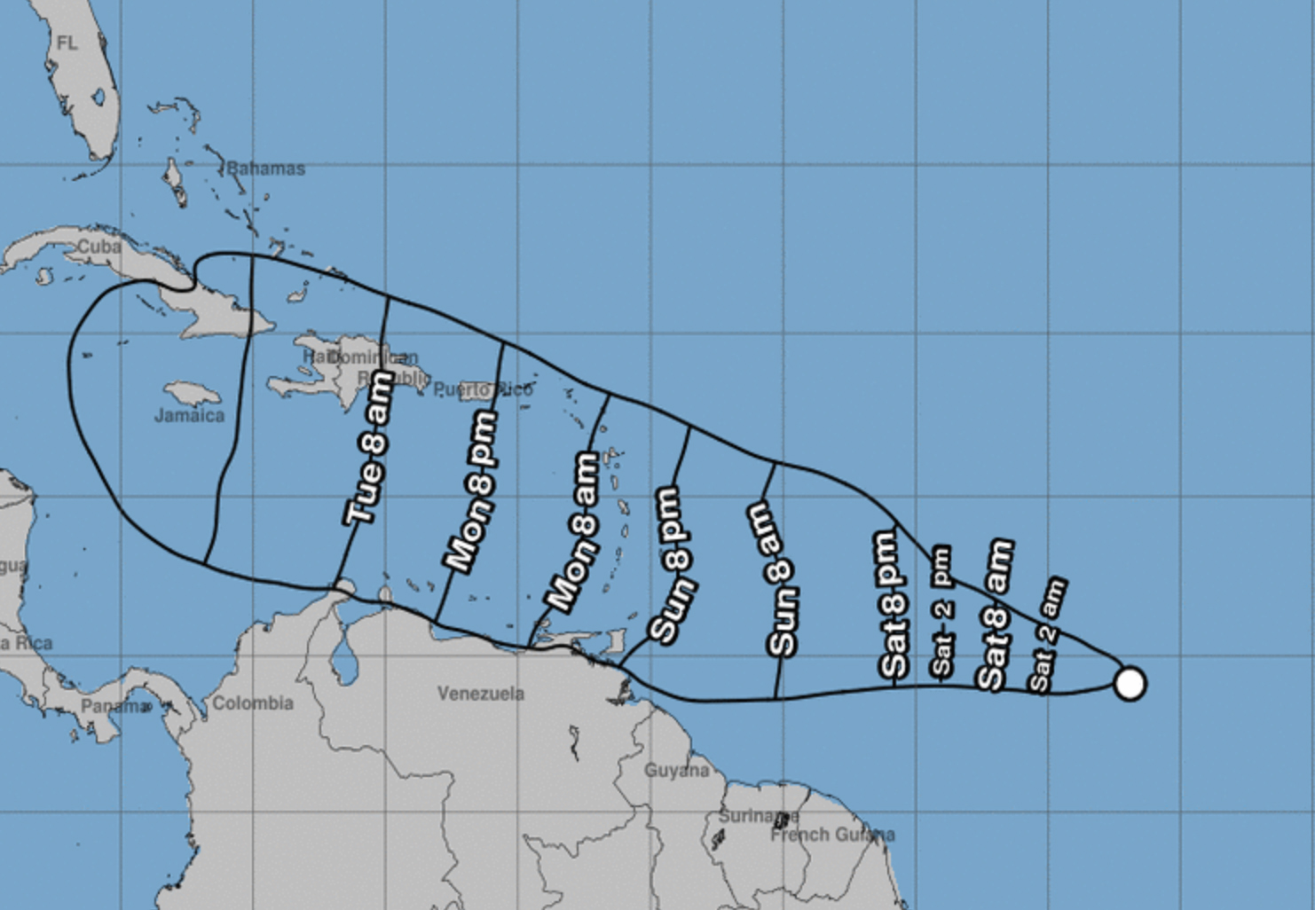 La depresión tropical #2, que podría fortalecerse a huracán en las próximas 24 a 48 horas, pasaría al sur de Puerto Rico temprano la próxima semana.