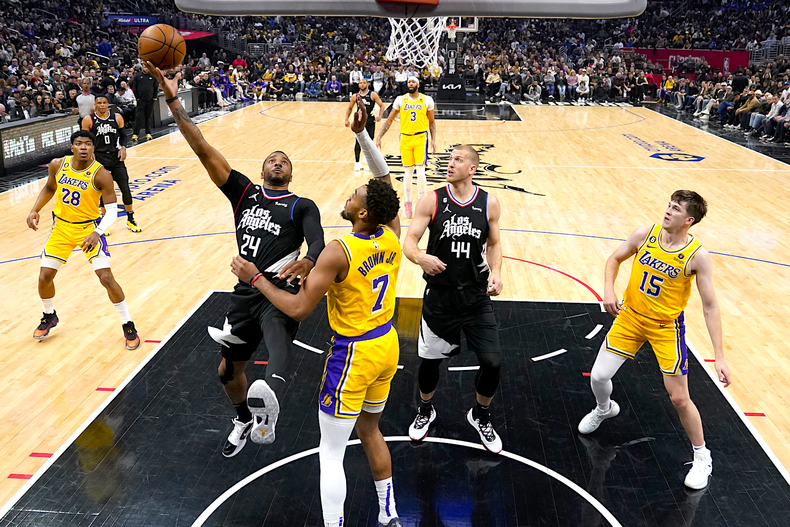 Aunque los Lakers tienen ya asegurado al menos un sitio en el minitorneo de repechaje, tratan de finalizar entre los seis primeros, para avanzar directamente a la postemporada. Los Clippers tienen ventaja en el criterio de desempate sobre los propios Lakers.