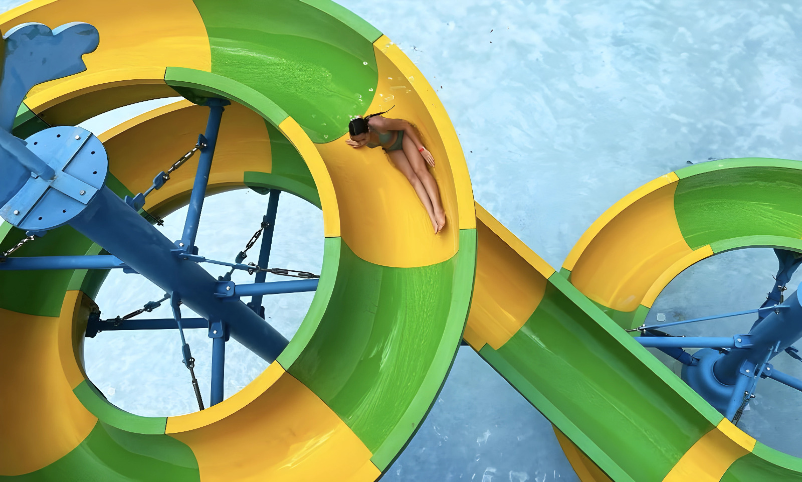 El parque también cuenta con facilidades para personas con diversidad funcional, incluyendo rampas, baños adaptados, áreas de descanso inclusivas y una silla anfibia disponible para el disfrute seguro de las piscinas de personas con movilidad reducida.