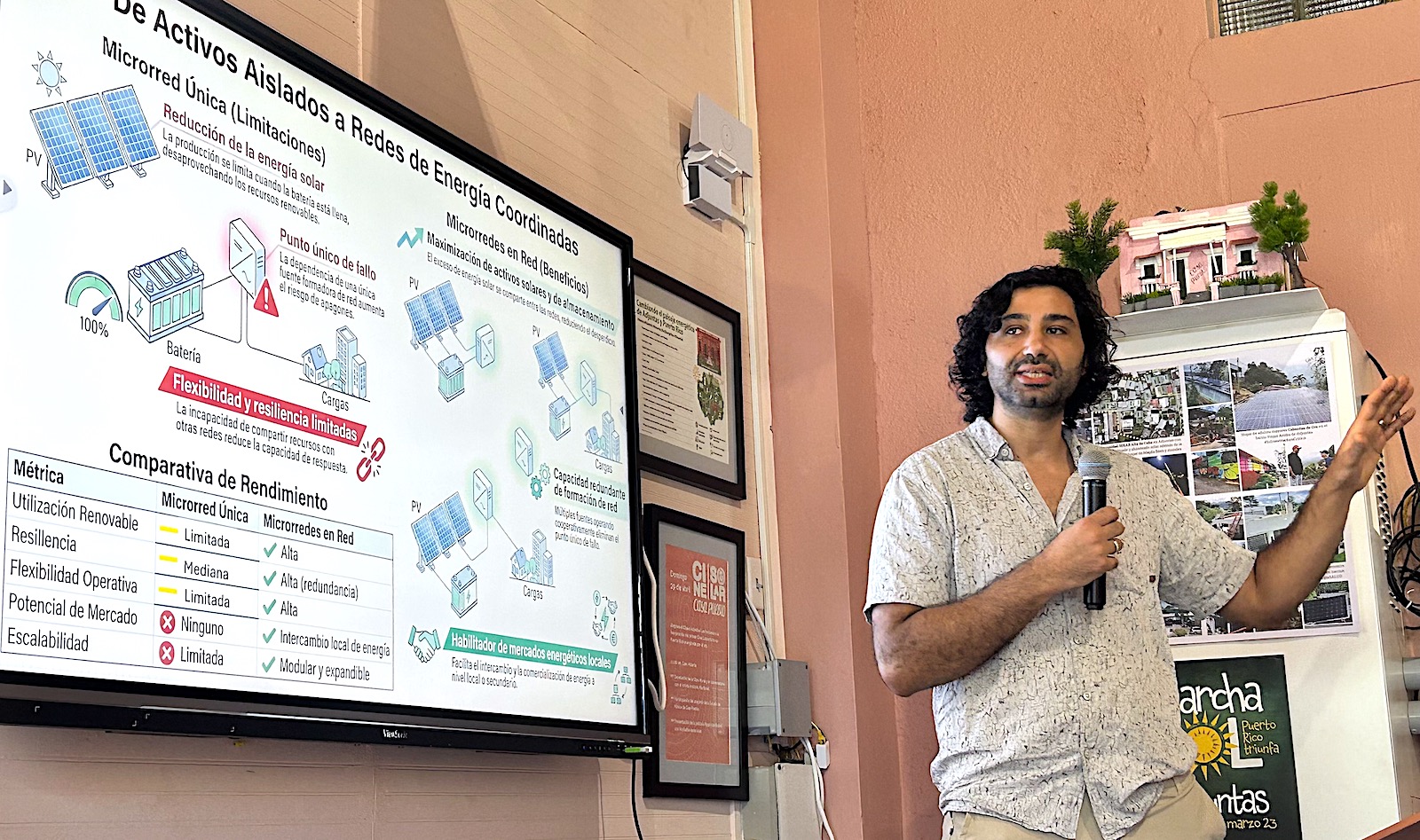 Allí, el ingeniero e investigador Maximiliano Ferrari Maglia ejecutó un hito histórico en Puerto Rico y el Caribe, al activar la primera red de microrredes solares: un modelo que puede multiplicarse a todo el archipiélago y posibilita el intercambio controlado de electricidad entre estos centros de producción energética, hasta ahora aislados.